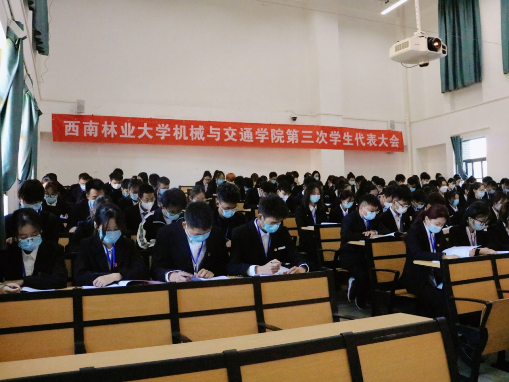11月20日,机械与交通学院第三次学生代表大会在第四教学楼阶梯教室举行。学院党委副书记陈继飞、院团委负责人及127名学生代表参加会议。