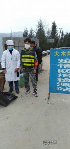 车辆工程2019级团支部学生,共青团员,云南镇雄人,疫情爆发后,在云南省昭通市镇雄县五德镇大木坪村进行疫情防控志愿服务,主要负责村口防疫卡点执勤,检查进出车辆和人员是否有通行证明,没有相关证明的不允许通过,并指导出入人员扫码登记,服务时长约5天。