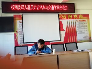 2018年12月4日,校团委史桓恺老师深入基层走访汽车与交通学院,并在经管楼311召开座谈会。