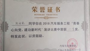 本次演讲比赛获得机械与交通学院团委和汽车服务工程2018级团支部全部青年团员的大力支持,最终活动取得圆满成功。