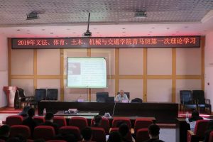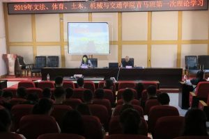 为了使大家更加深刻了解青马培训的意义,充分传达青年马克思主义精神,增强学生骨干的责任意识,于2019年4月13日进行了2019年文法、体育、土木、机械与交通学校青马班第一次理论学习。与会人员包括:原校党委宣传部部长孙韬老师、文法学院团委书记刘姣老师、体育学院团委书记王欢老师、土木工程学院团委书记刘鸣奇老师、机械与交通学院团委书记陈红艳老师,以及各学院青马班的学员。