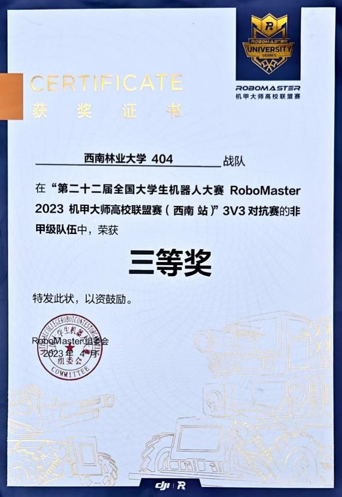 近日,第二十二届全国大学生机器人RoboMaster2023机甲大师高校联盟赛(西南站)在重庆举行。星空体育登录网页入口404机器人战队在钱良辉、徐国栋、杨洁、陈继飞老师的指导下,经过3天紧张激烈的对抗,闯入16强,获得三等奖2项。