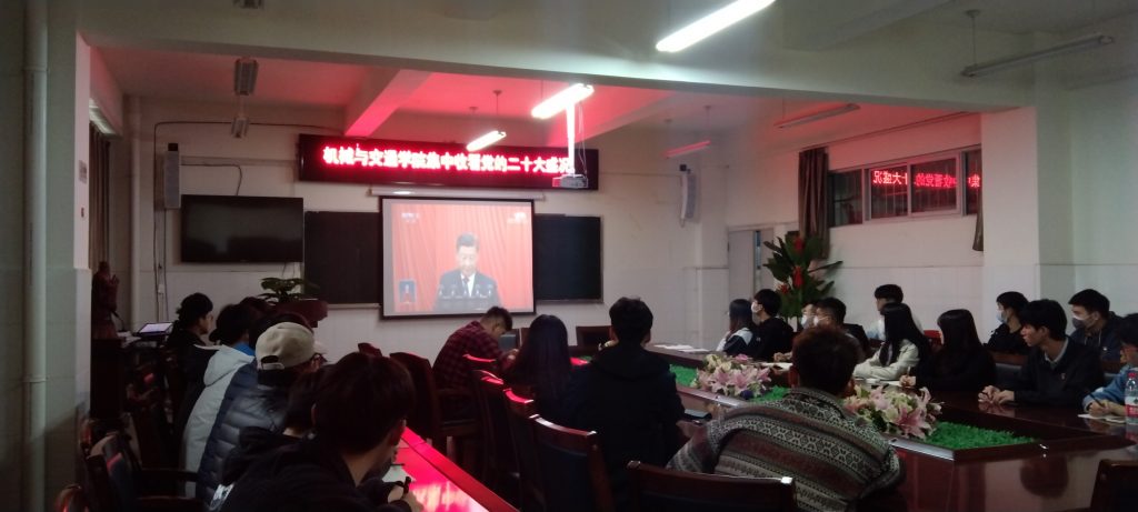 10月16日,机械与交通学院组织师生收听收看中国共产党第二十次全国代表大会开幕盛况。