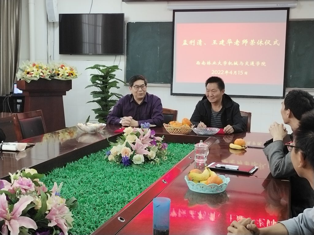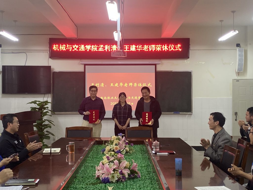 2022年4月17日下午,机械与交通学院为孟利清老师和王建华老师举行荣休仪式。荣休仪式上,陈继飞老师代表学院感谢两位老师三十多年来对学院的勤勉付出。不论是在教书育人还是科学研究方面,两位老师都为学院的发展做出了不可磨灭的贡献,衷心期待他们继续关心、关注和支持学院的发展,为学校人才培养继续贡献力量。