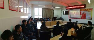 2018年12月18日上午10点,汽车与交通学院全体无课教工党员、学生党员在经管楼311集中观看庆祝改革开放40周年大会直播。