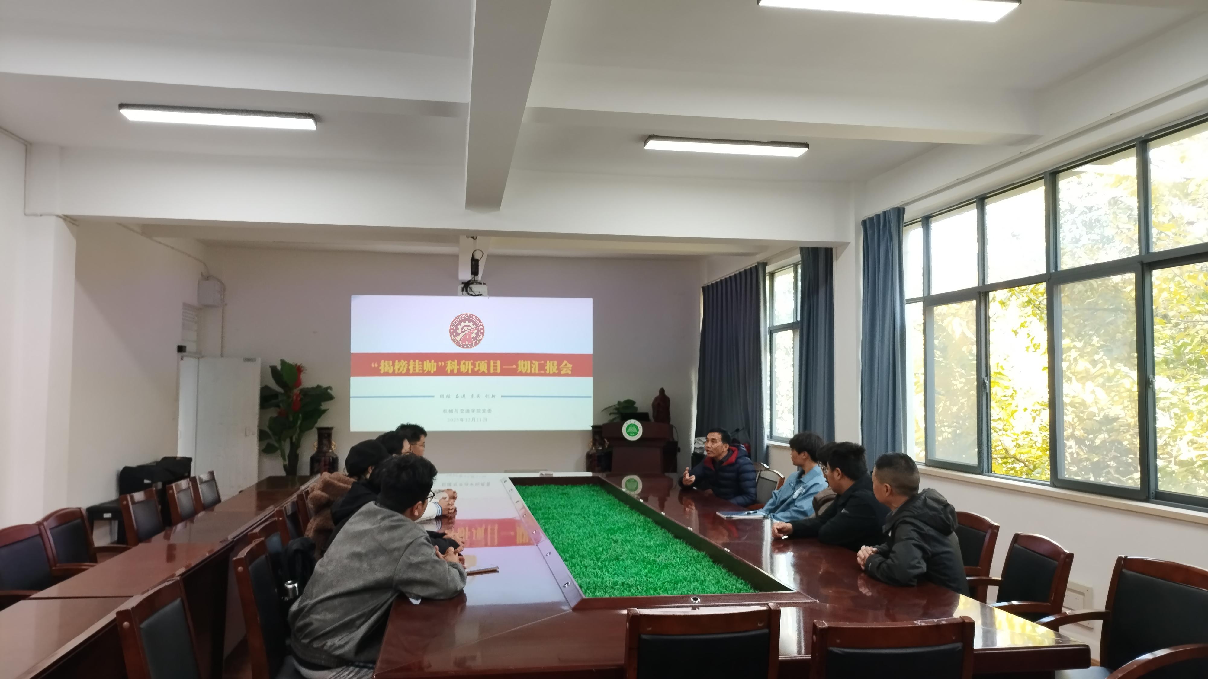 12月11日,机械与交通学院党委在森工楼211会议室组织召开“揭榜挂帅”项目一期工作汇报会议。